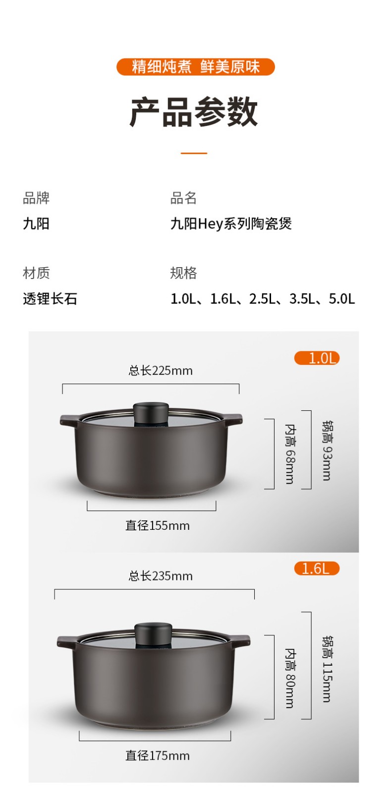 商品名称:九阳汤锅砂锅炖锅煲汤煲仔饭家用陶瓷锅明火燃气耐高温小沙锅陶瓷煲 Hey系列3.5L【适用3-5人】-TCB3503 6953349830132