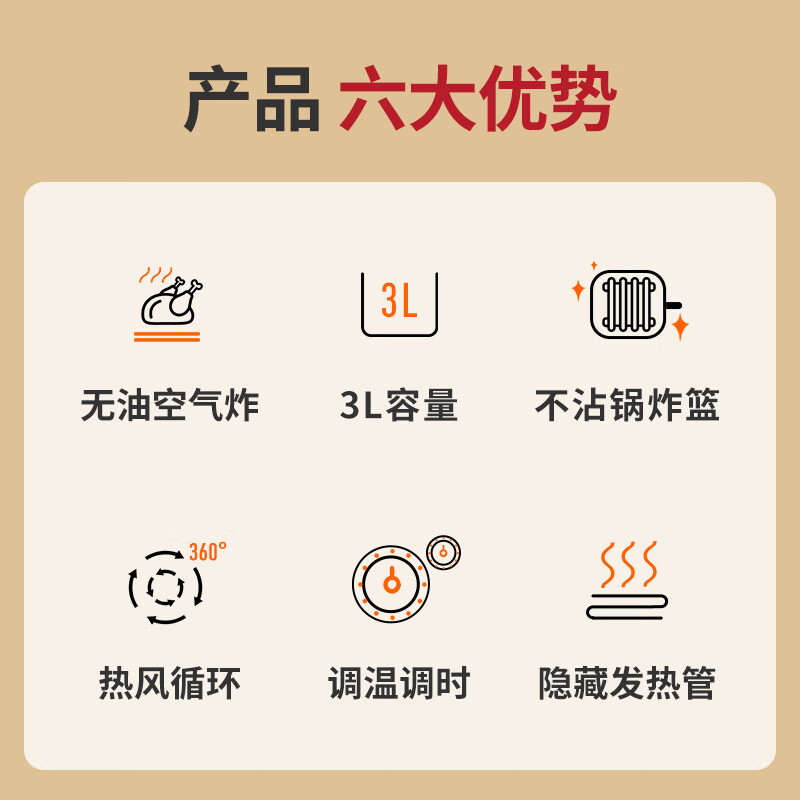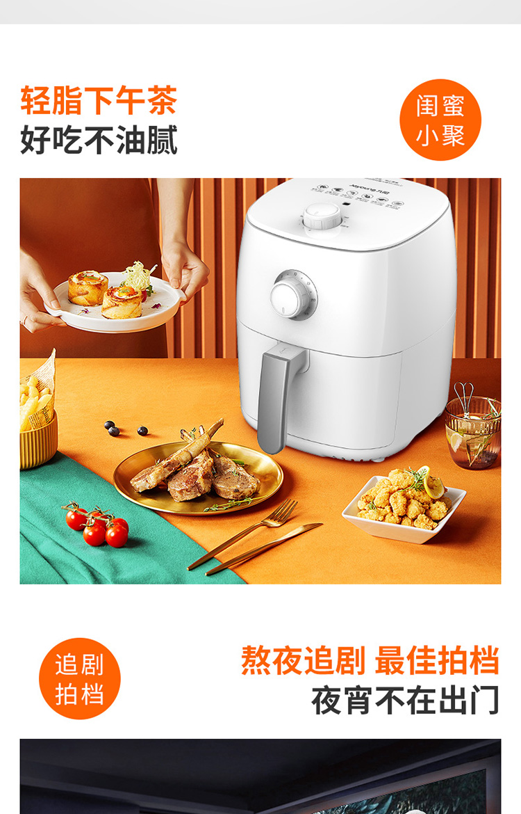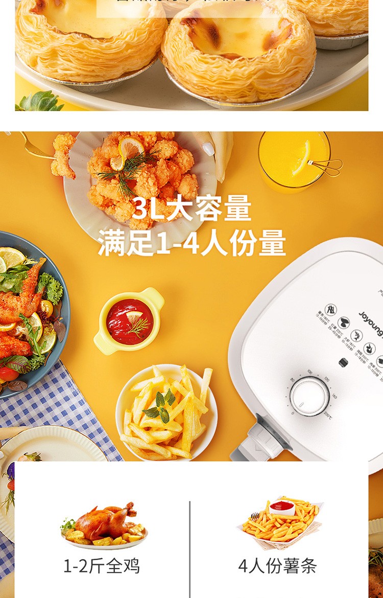 商品名称:九阳(Joyoung)家用智能多功能3L无油电炸锅1300W不沾易清洗空气炸锅 KL30-VF392 6953349842142