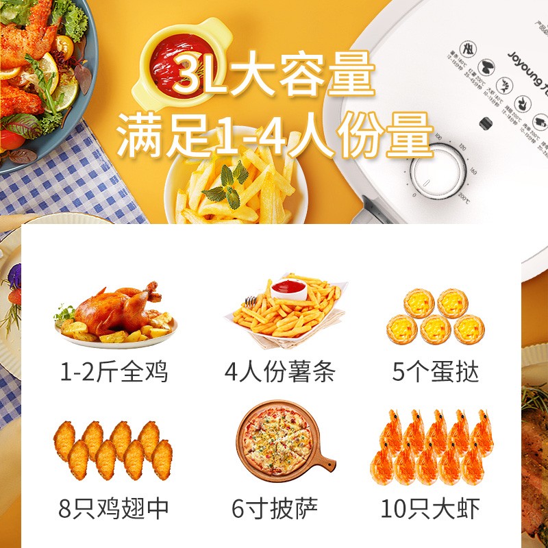 九阳(Joyoung)家用智能多功能3L无油电炸锅1300W不沾易清洗空气炸锅 KL30-VF392 6953349842142