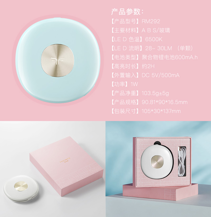 商品名称:斐色耐随身镜 (Q-MIRROR)RM292-DL 粉色/蓝色/白色/西柚红可选下单备注颜色
