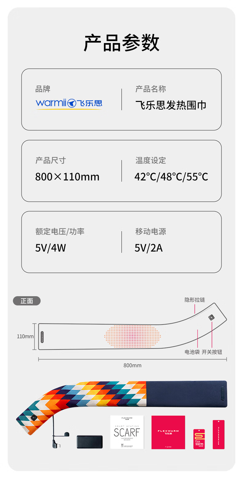 商品名称:飞乐思(Flexwarm)发热围巾冬季充电智能发热保暖围脖 交织热浪6970616863211 粉红秘境6970616863150 下单备注颜色