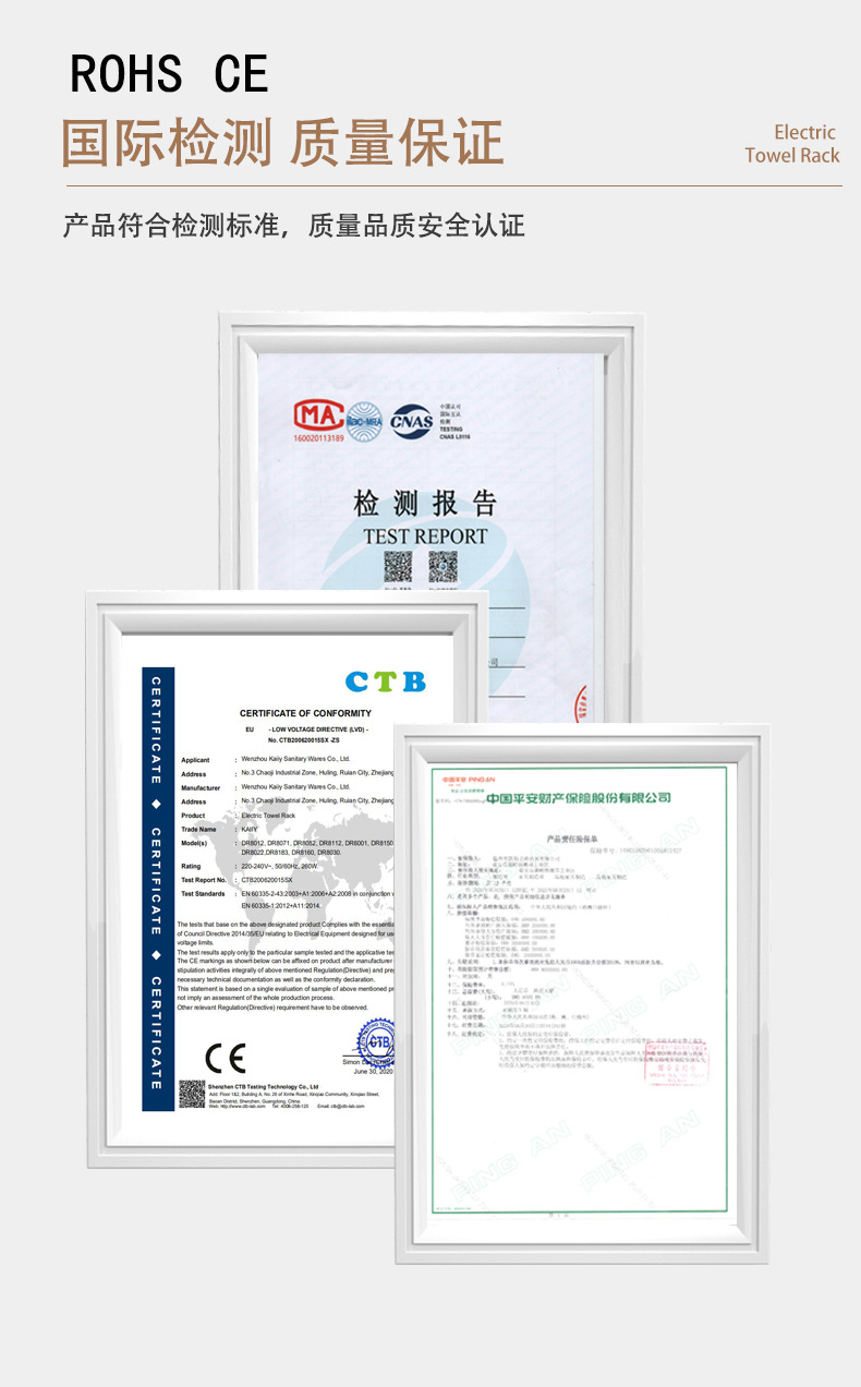 商品名称:凯勒电热毛巾架DR9020 光铬 500*800*110mm