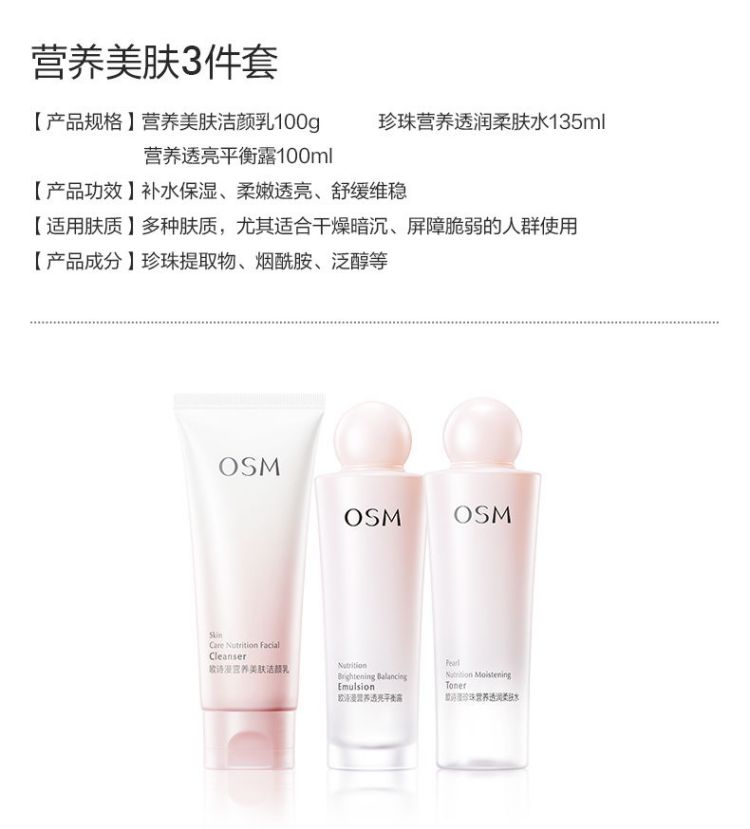 商品名称:欧诗漫营养美肤曜光礼盒(洁面100g+水135ml+平衡露100ml)6972751507210