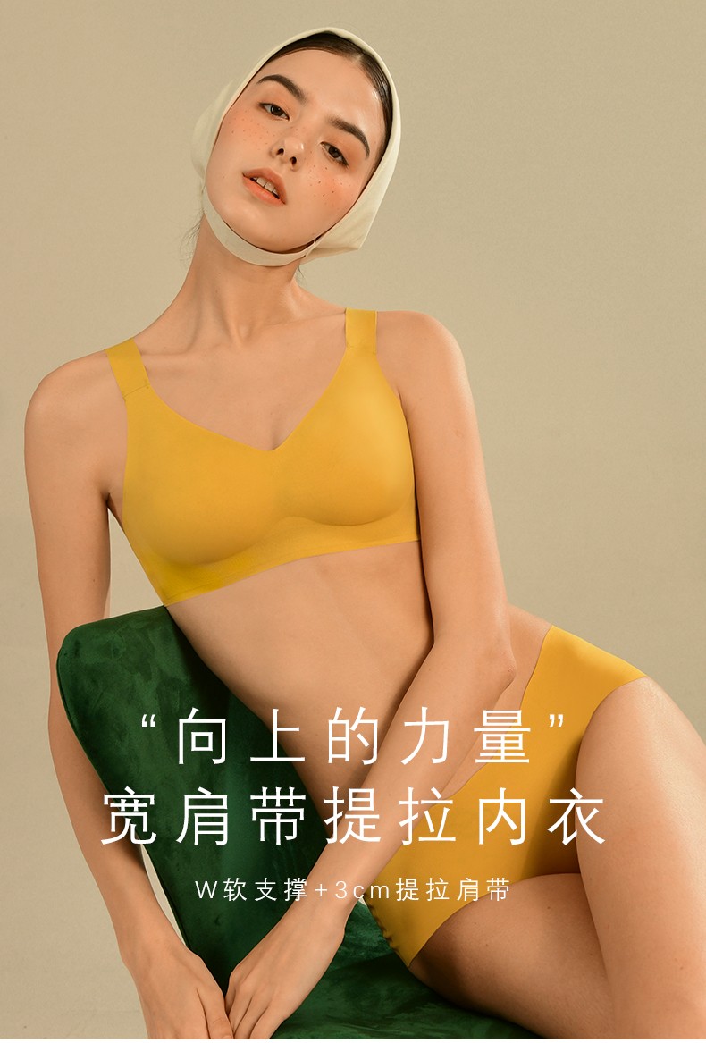 素肌良品 大胸显小U型美背运动无痕文胸MX088 S/M/L/XL 雾霾绿/素肌肤/珊瑚红/气质黑/柠檬黄/香芋紫可选下单备注颜色尺码