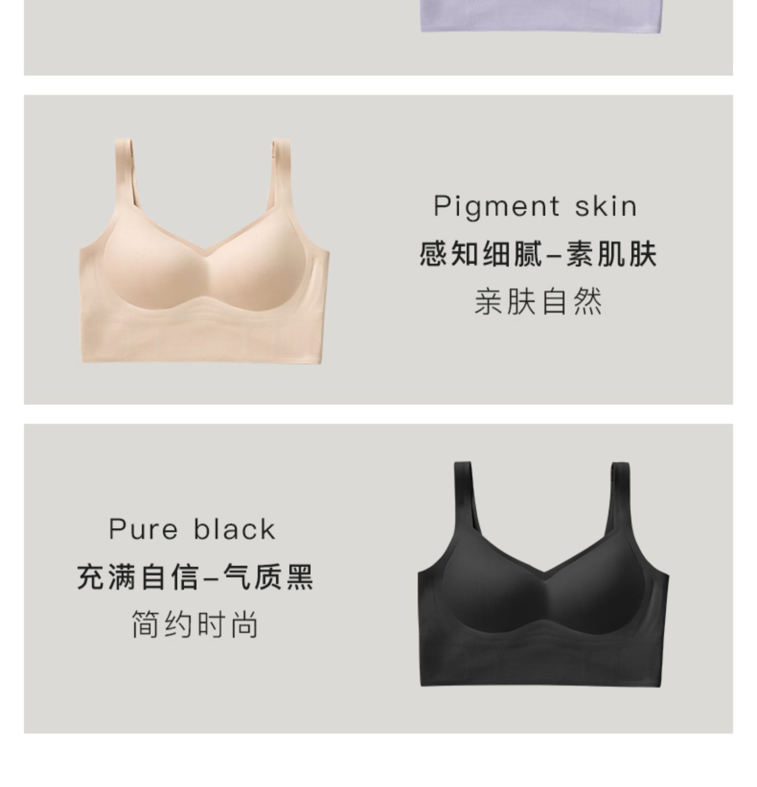 素肌良品果冻条软支撑交叉美背内衣MX133 S/M/L/XL气质黑/素肌肤/沙尘紫/烟灰绿/浅啡红可选下单备注颜色尺码