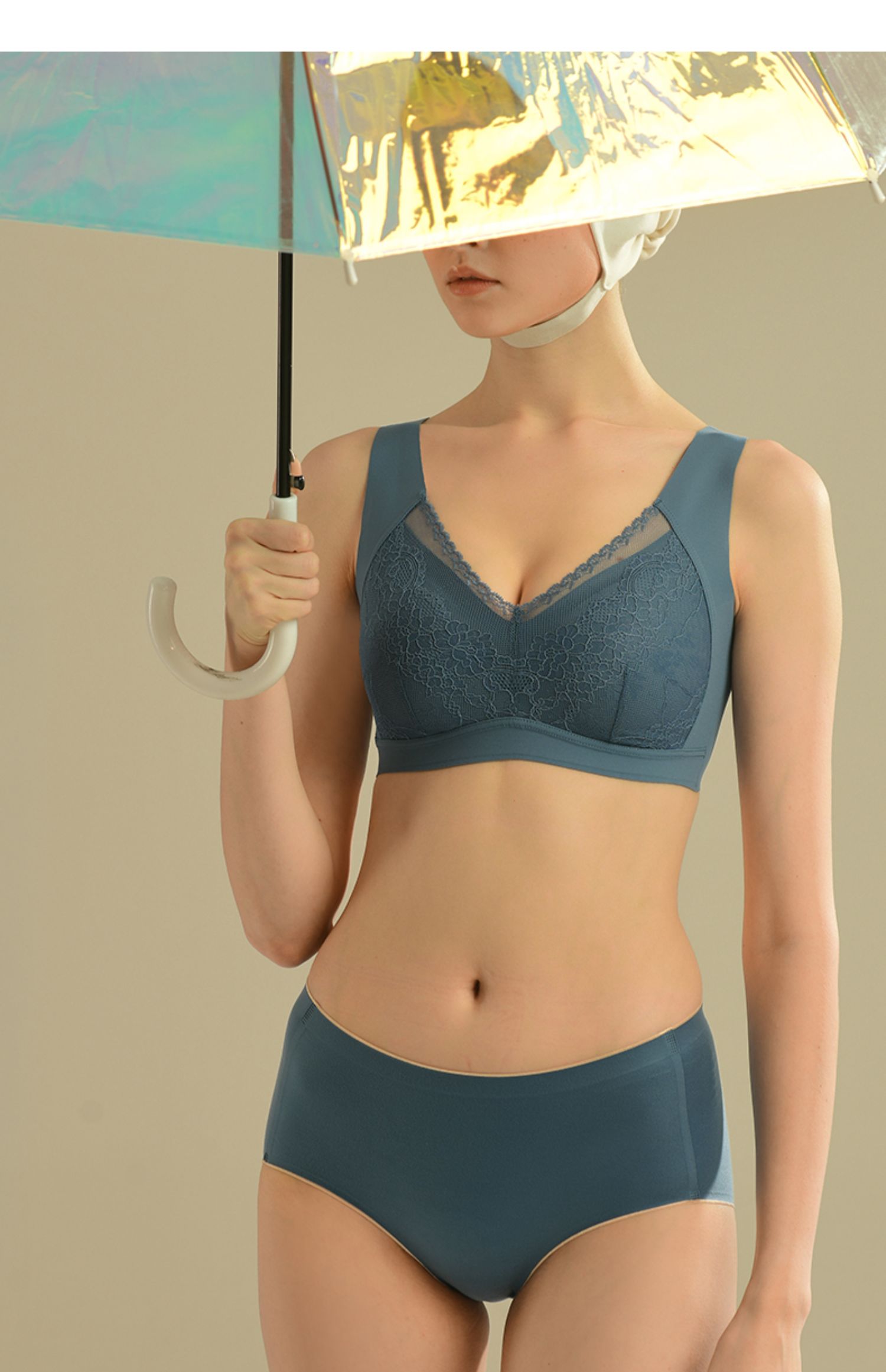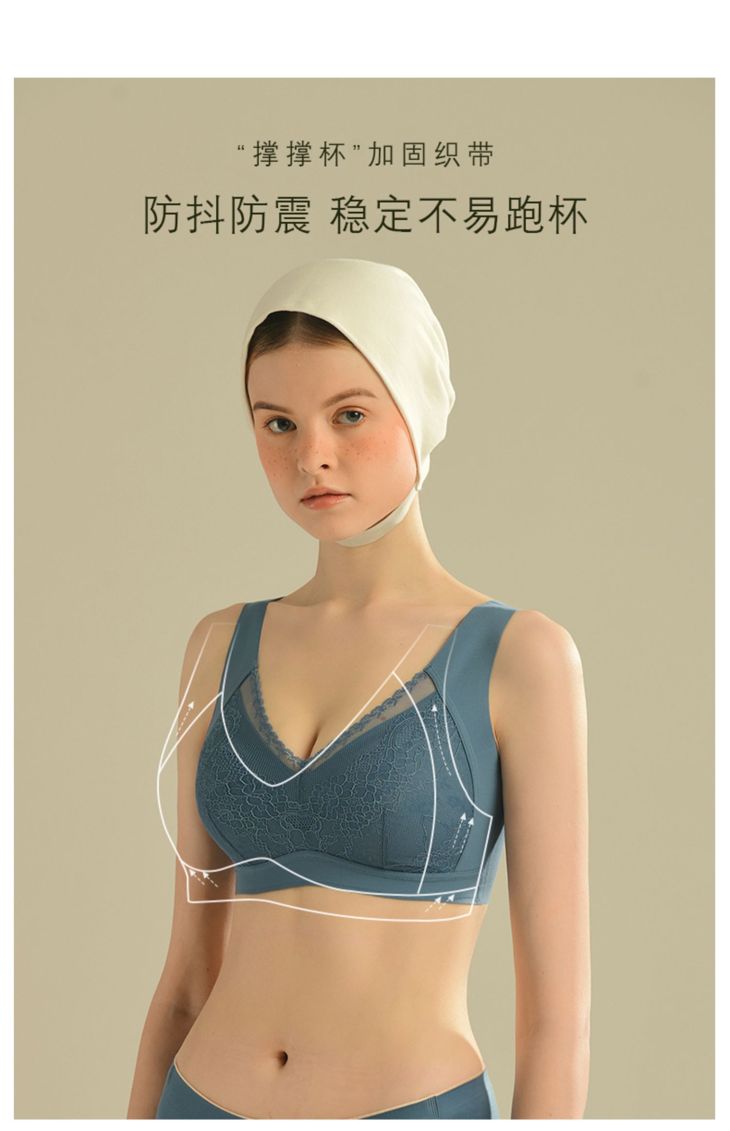 商品名称:素肌良品无痕无钢圈聚拢调整型蕾丝大胸显小背心式内衣MX077 S/M/L/XL狄克灰/挪威蓝/气质黑/素肌肤可选下单备注颜色尺码