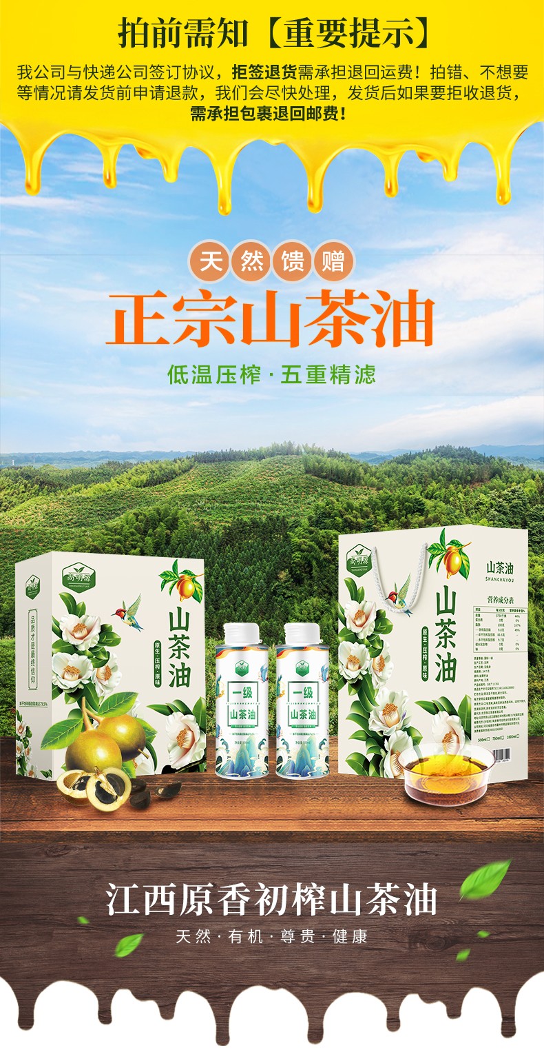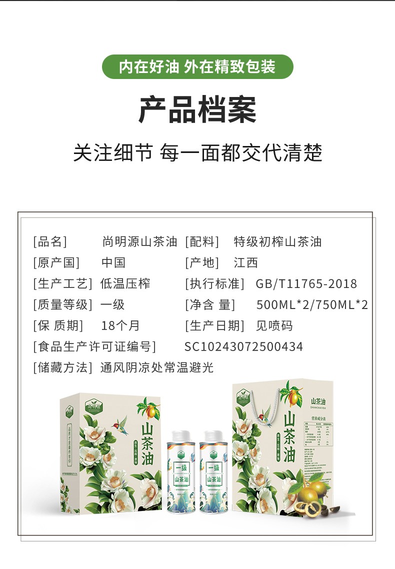 商品名称:尚明源(铁罐)山茶油清新简装礼盒 750ML*2