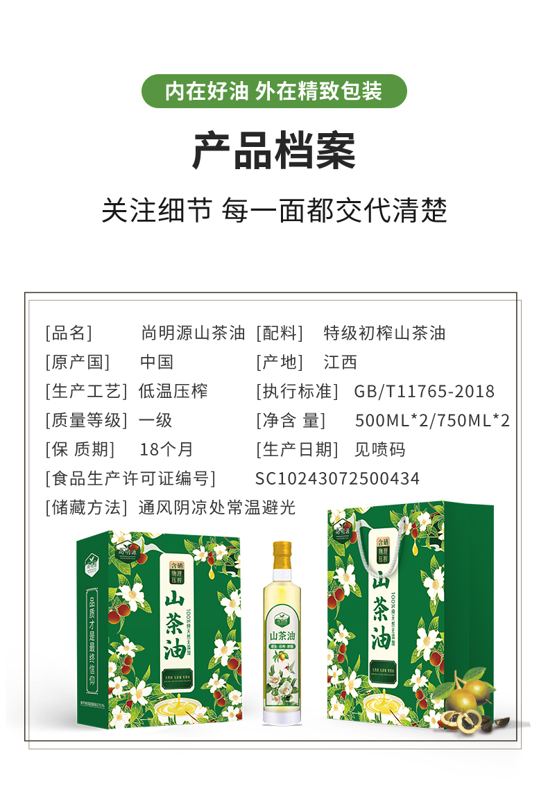 商品名称:尚明源(田野)山茶油简装礼盒 750ML*2