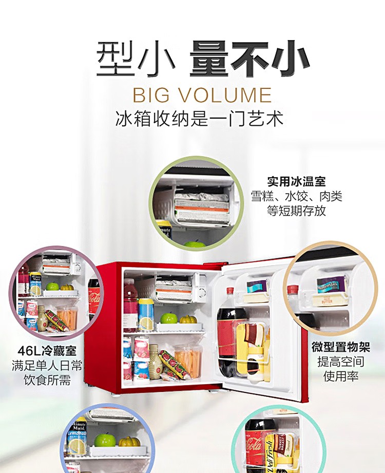 商品名称:格兰仕(Galanz)复古直冷冰箱单层 静音 7档控温 BC-V46 红色
