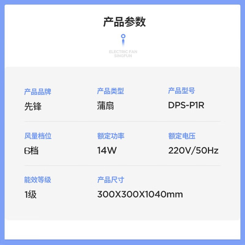 商品名称:先锋 电风扇 25cm DPS-P1R 6923046232652