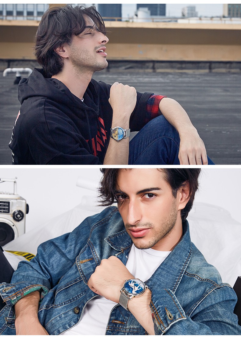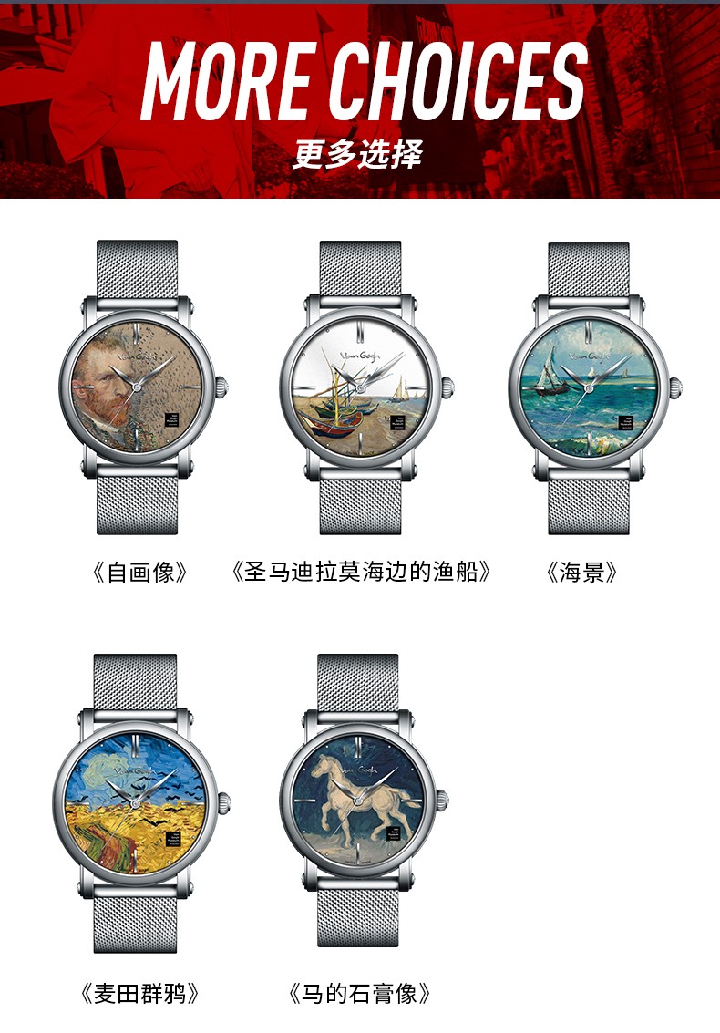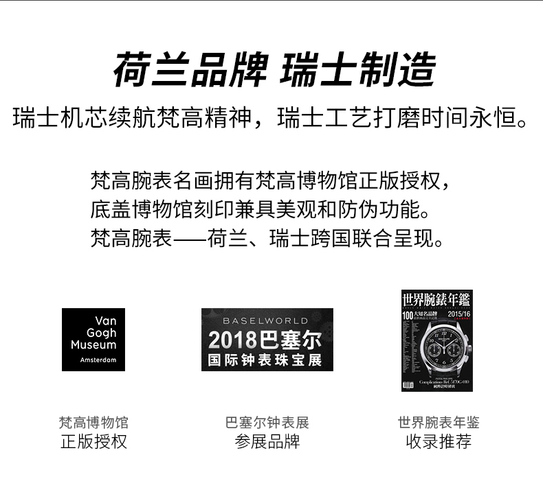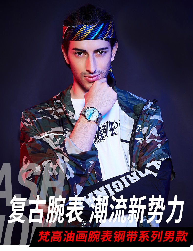 商品名称:梵高(VanGogh)瑞士手表男 3D油画表面牛皮表带时尚休闲潮牌博物馆正版原装进口 明星同款 麦田群鸦 Gent 07-1-BM星空蓝