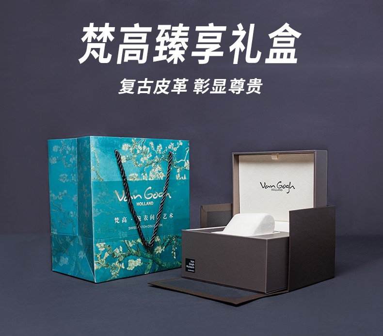 梵高(VanGogh)瑞士手表男 3D油画表面牛皮表带时尚休闲潮牌博物馆正版原装进口 明星同款 麦田群鸦 Gent 07-1-BM星空蓝