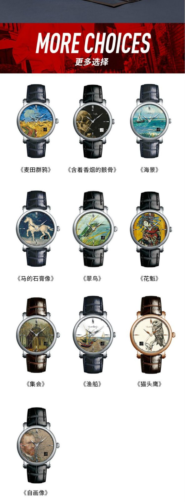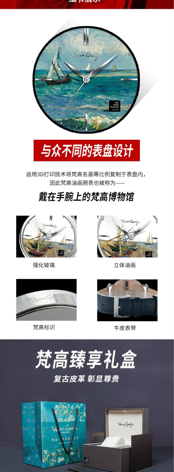 商品名称:梵高(VanGogh)瑞士手表男 3D油画表面牛皮表带时尚休闲潮牌博物馆正版原装进口 明星同款 海景 Gent 04-1 6972709230450