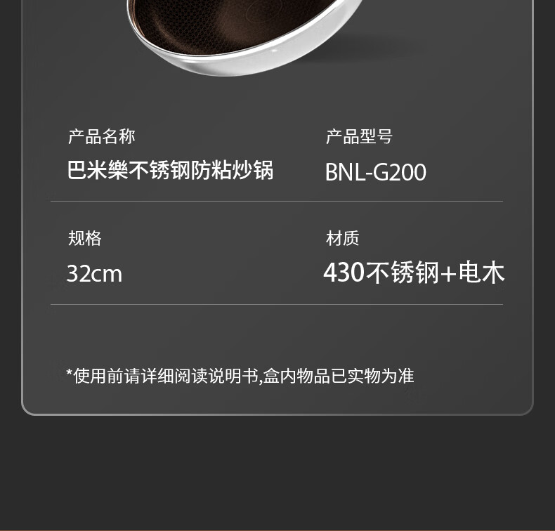 商品名称:巴米乐 不锈钢防粘炒锅32cm BNL-G200 6975222361267