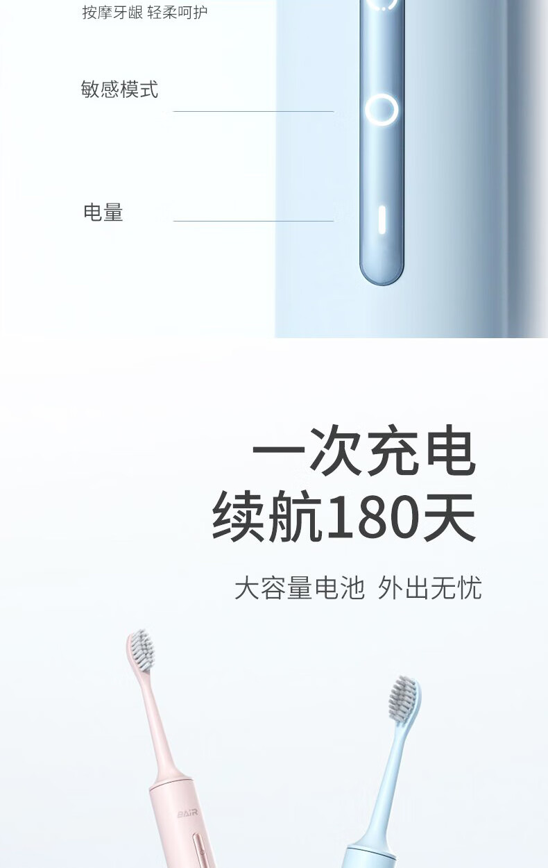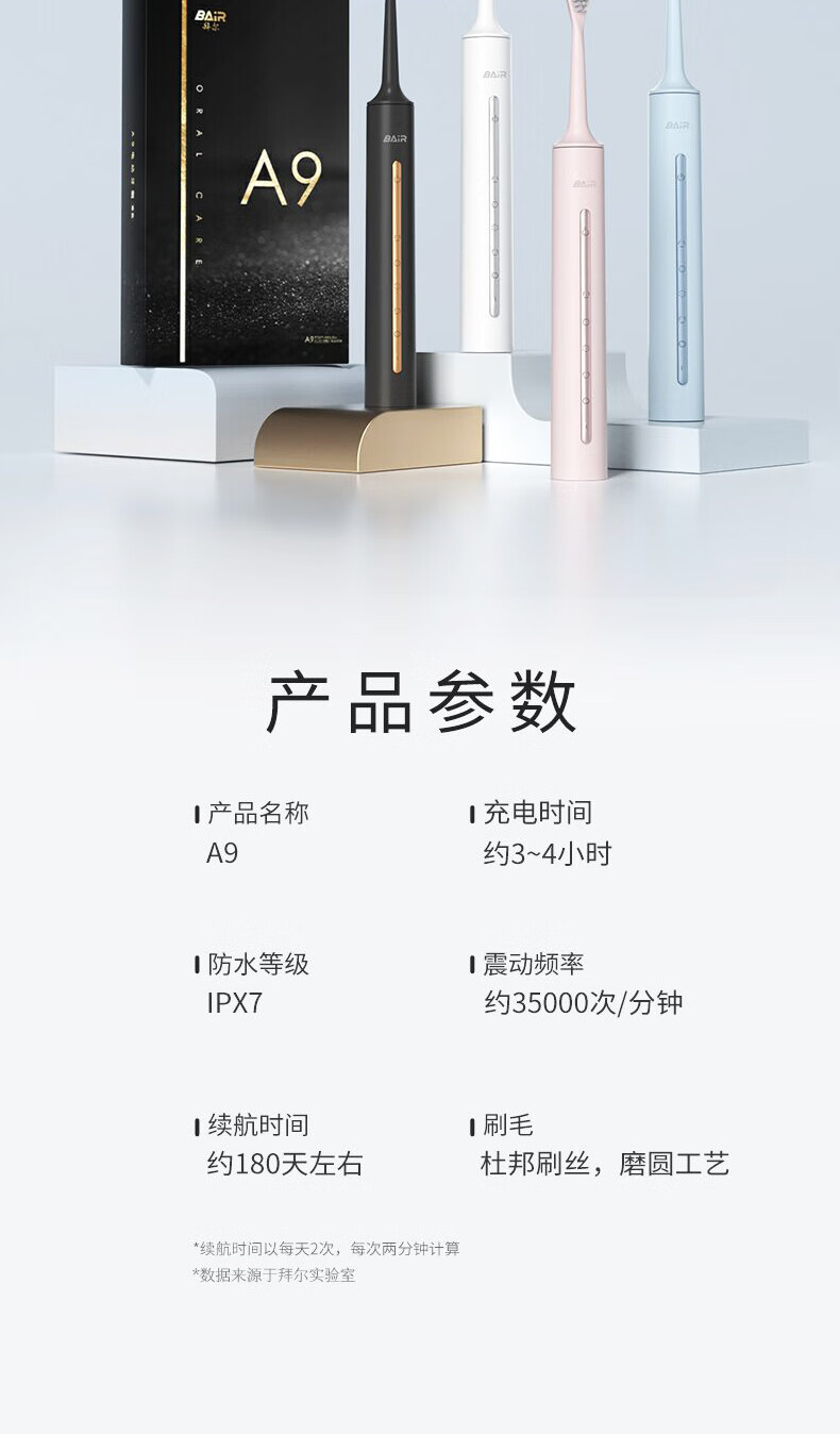 商品名称:拜尔 电动牙刷A9(含2只原装刷头) 白色,粉色、蓝色、黑色 下单备注颜色