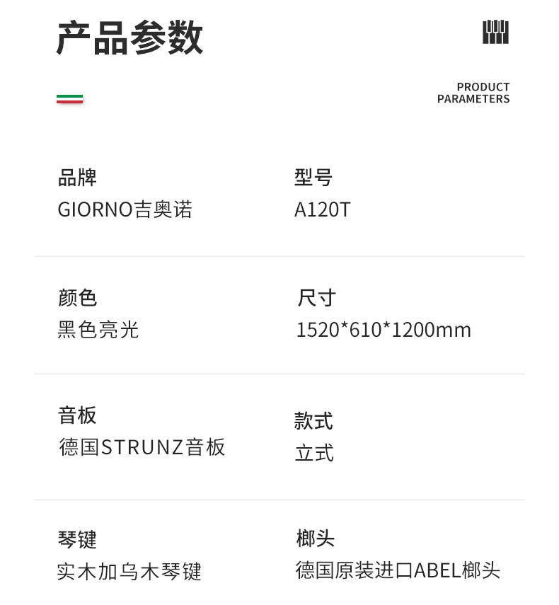 商品名称:吉奥诺A120T全新立式专业考级演奏初学者家家用成人专业钢琴钢琴
