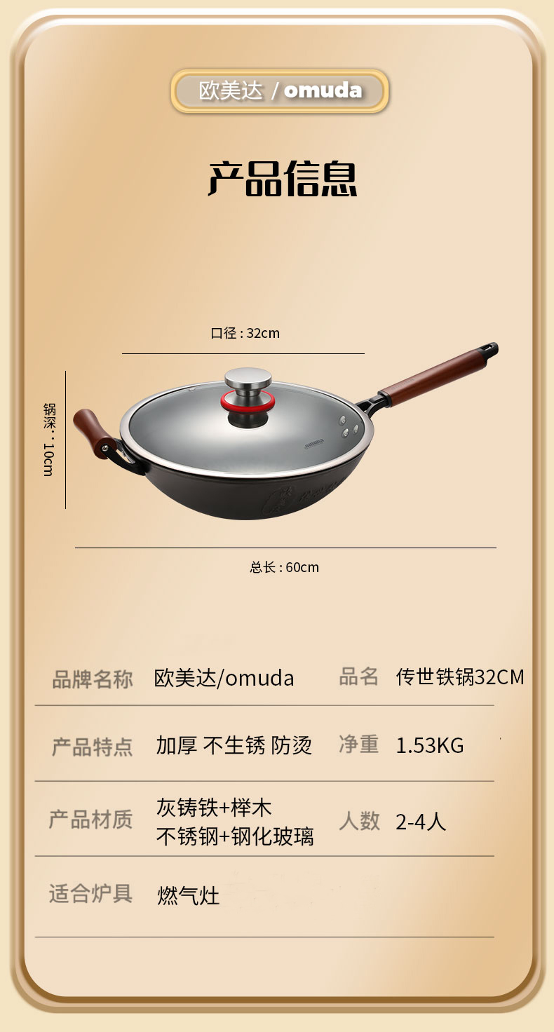商品名称:欧美达 匠系列-传世铁锅32CM JTG32-A 6941334152048