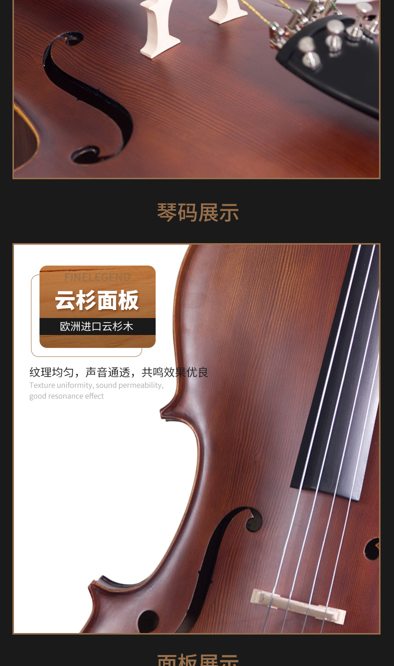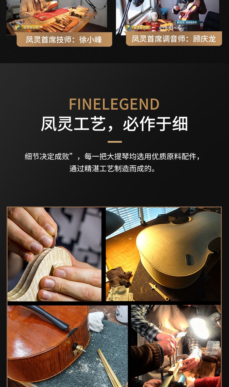 商品名称:凤灵大提琴 全手工实木成人大提琴初学者考级演奏乐器FLC3111