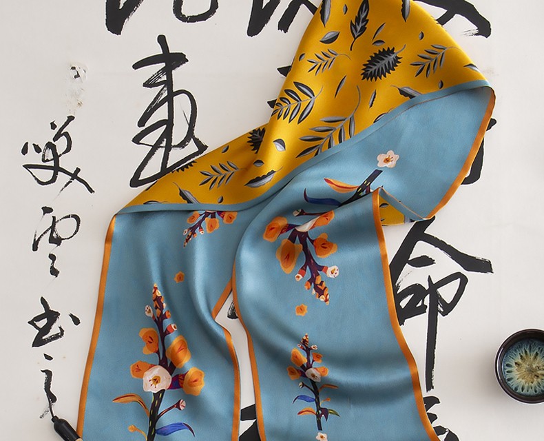 商品名称:恒源祥 真丝双层领巾姜黄树叶15*150cm HYXSJ1008 6941204319076