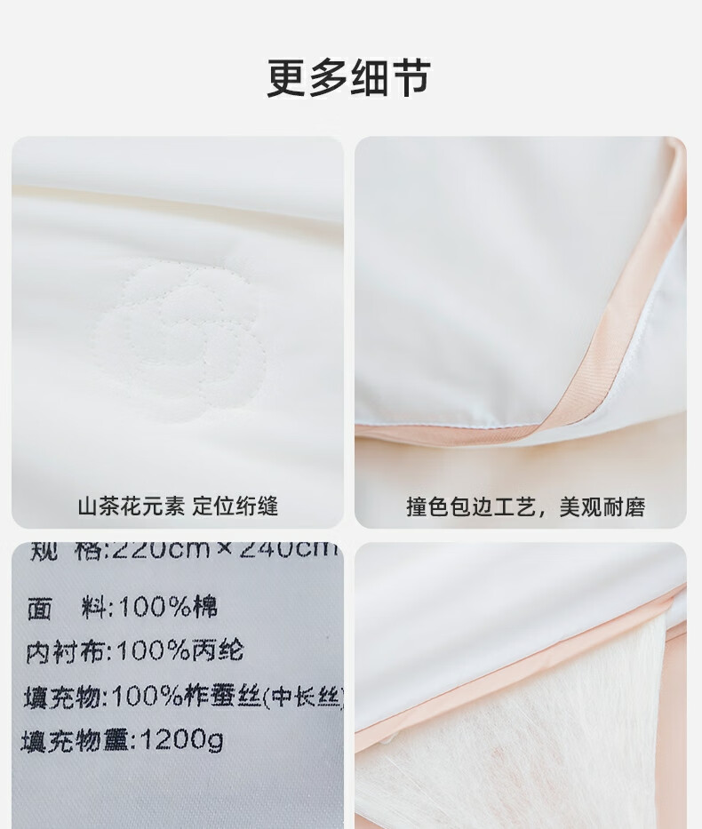 商品名称:水星家纺 星·丝柔抗菌蚕丝春秋被 200cm×230cm 531239 6936626728339 900g
