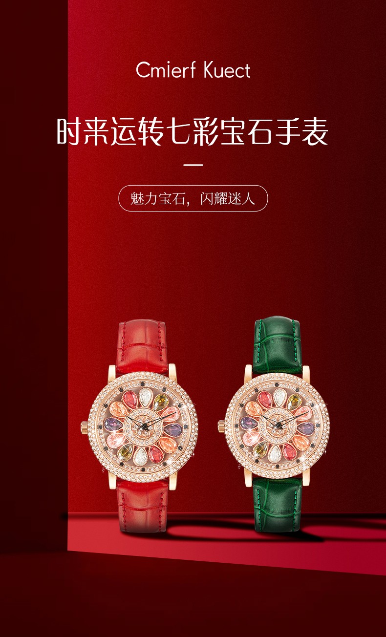 Cmierf Kuect (中国CK) 时来运转七彩宝石手表 CK-6813L 绿色/红色可选 下单备注颜色 新疆,西藏,宁夏,青海,内蒙古,甘肃,黑龙江,吉林,辽宁不发货