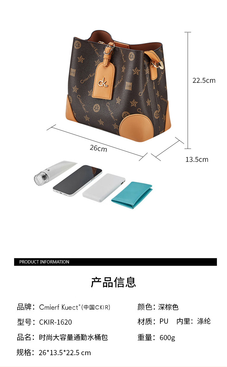 Cmierf Kuect(中国CKIR) 时尚大容量通勤水桶包CKIR-1620 深棕色 下单备注颜色/尺码 新疆,西藏,宁夏,青海,内蒙古,甘肃,黑龙江,吉林,辽宁不发货
