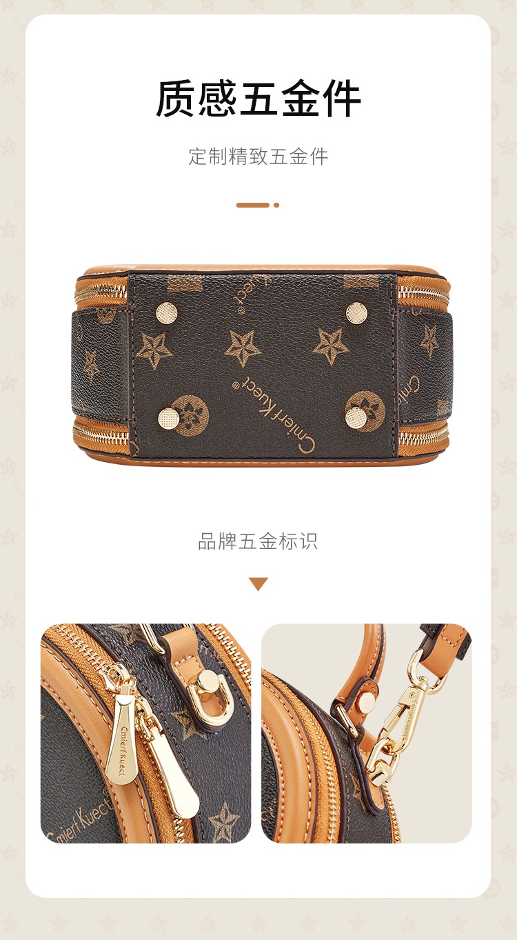 Cmierf Kuect(中国CK) 轻奢单肩女圆饼包 CK-2020A 米白色/浅棕色/深棕色 下单备注颜色 新疆,西藏,宁夏,青海,内蒙古,甘肃,黑龙江,吉林,辽宁不发货