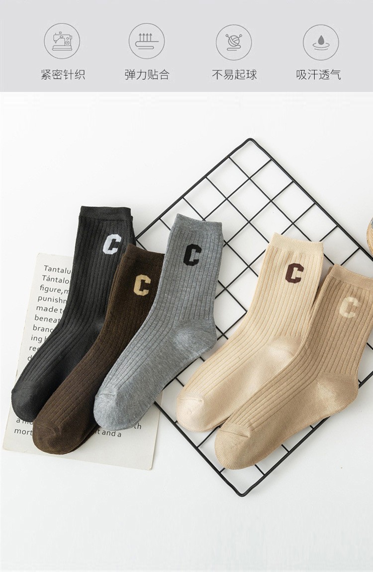 Cmierf Kuect(中国CK) 女款纯色字母条纹棉袜 CK-LWC-01 黑,棕色,粉色,灰色,绿 均码 下单备注颜色 新疆,西藏,宁夏,青海,内蒙古,甘肃,黑龙江,吉林,辽宁不发货