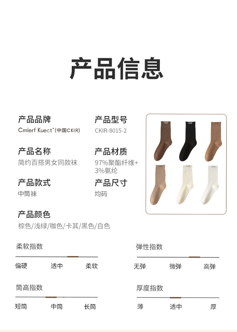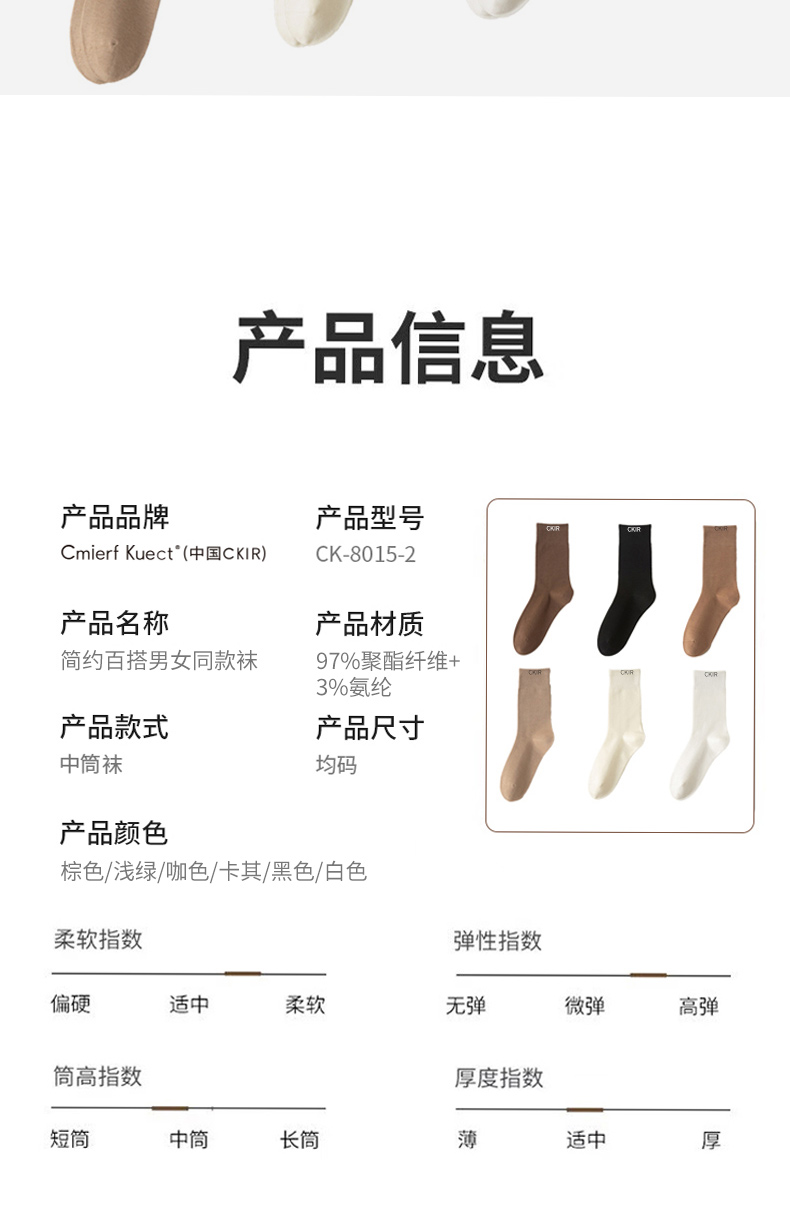 商品名称:Cmierf Kuect 简约百搭男女同款袜 CKIR-8015-2新疆,西藏,宁夏,青海,内蒙古,甘肃,黑龙江,吉林,辽宁不发货