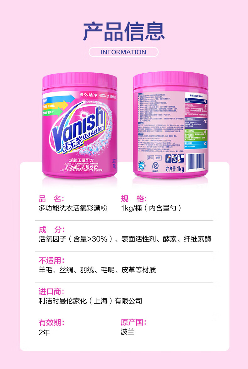 商品名称:渍无踪 活氧多功能洗衣增效粉1kg 5011417544556 偏远另加运费