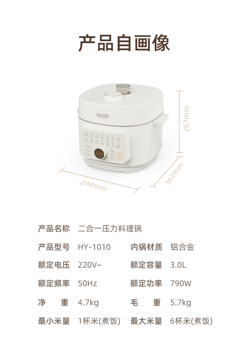 商品名称:适盒 无极压力料理锅HY-1010 3L