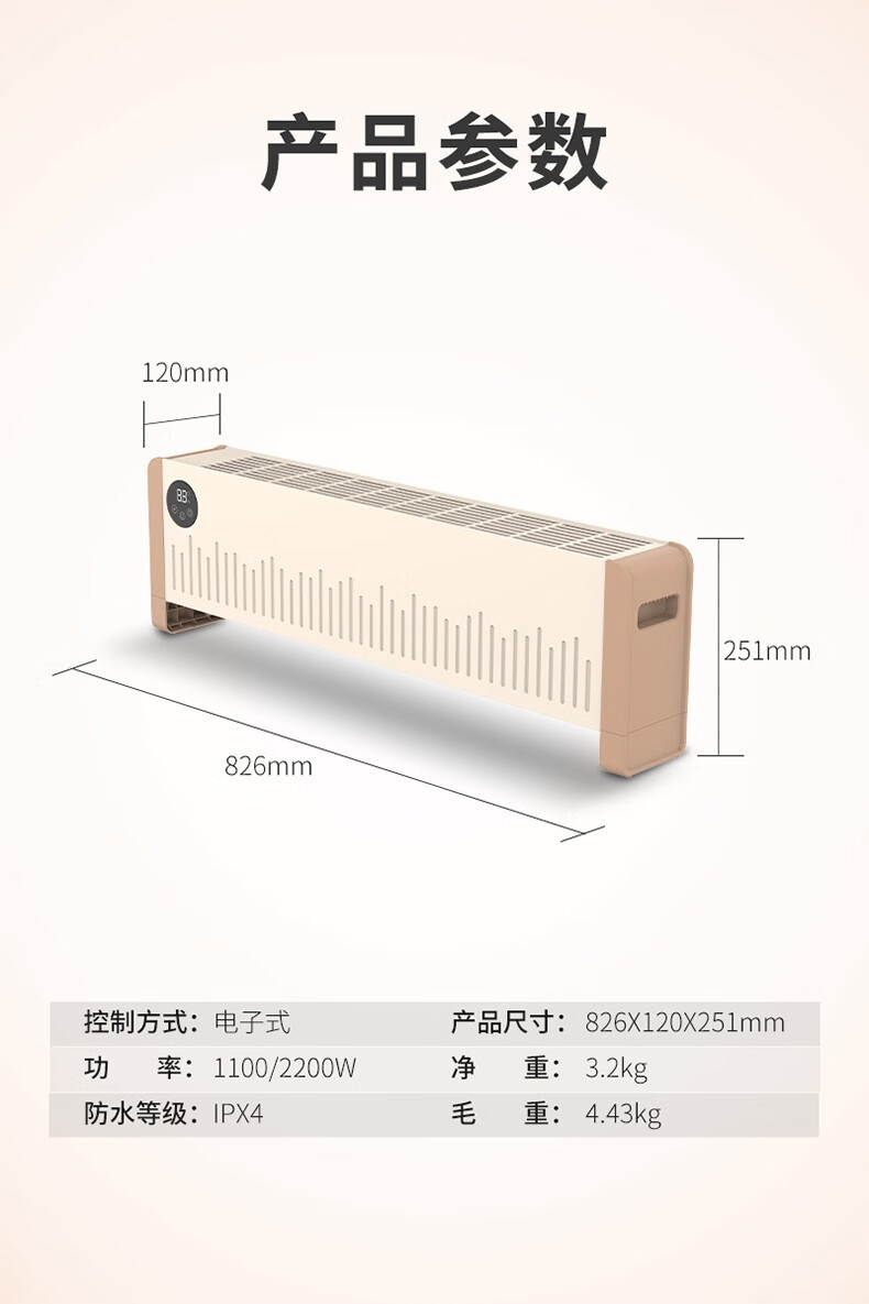 商品名称:先锋(Singfun)取暖器 踢脚线取暖器 360度防水可预约可遥控断电保护 HD2028RC-22R 6923046244112