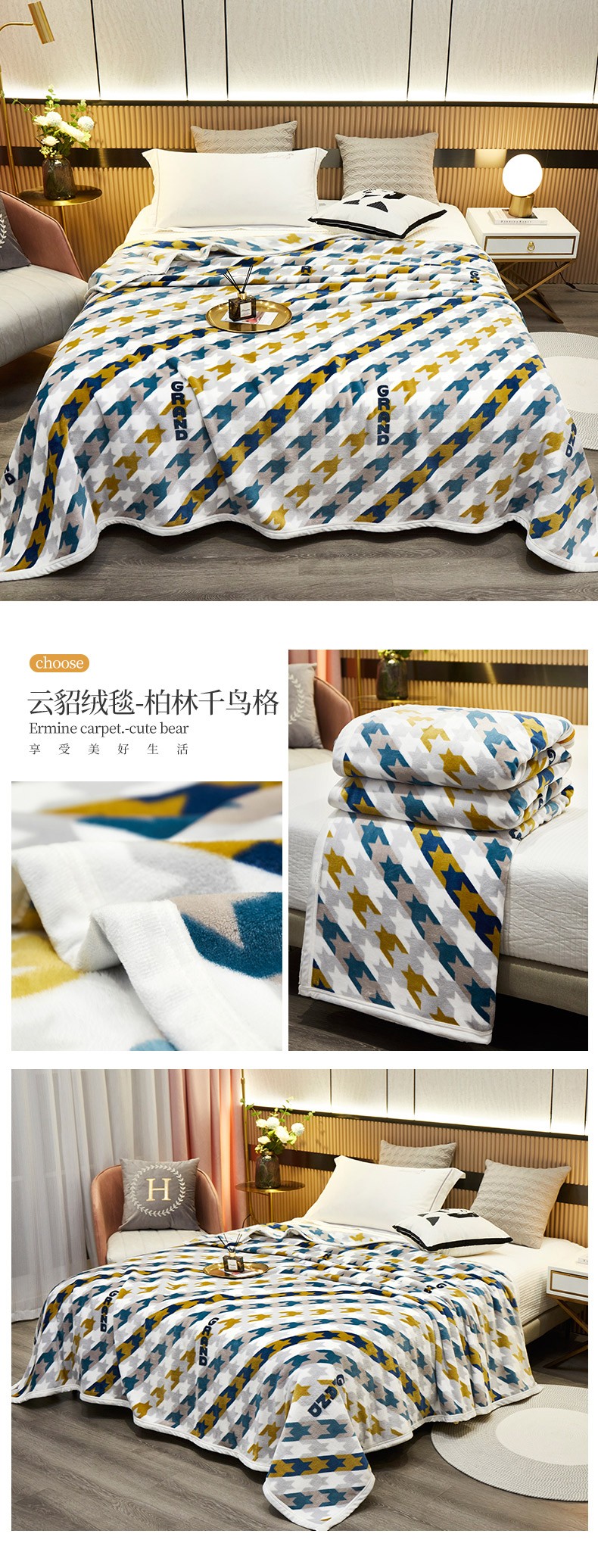 商品名称:南方生活 印花云貂绒毛毯午睡毛毯 迪卡农/千鸟格 200*230cm3.1斤 可选下单备注花色
