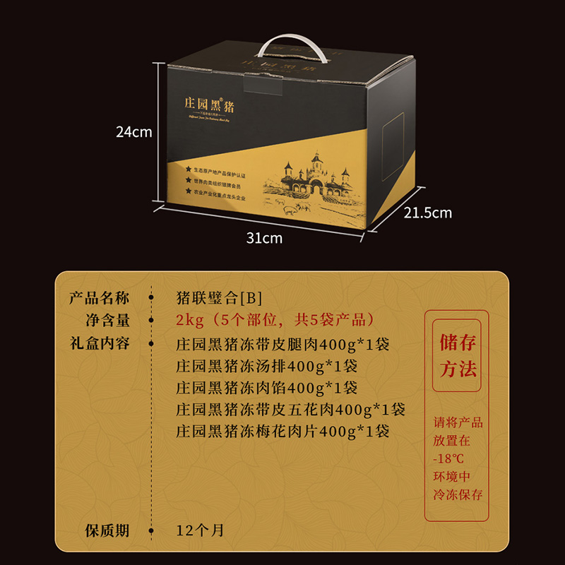 商品名称:庄园黑 猪联璧合生鲜冻品礼盒B 2kg6937495119051