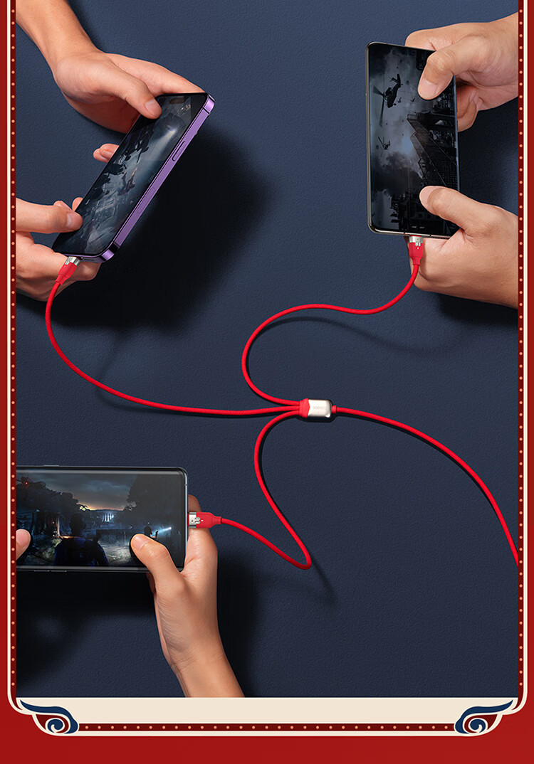 倍思 兔年生肖 一拖三快充数据线CASX060009红色 6932172622459