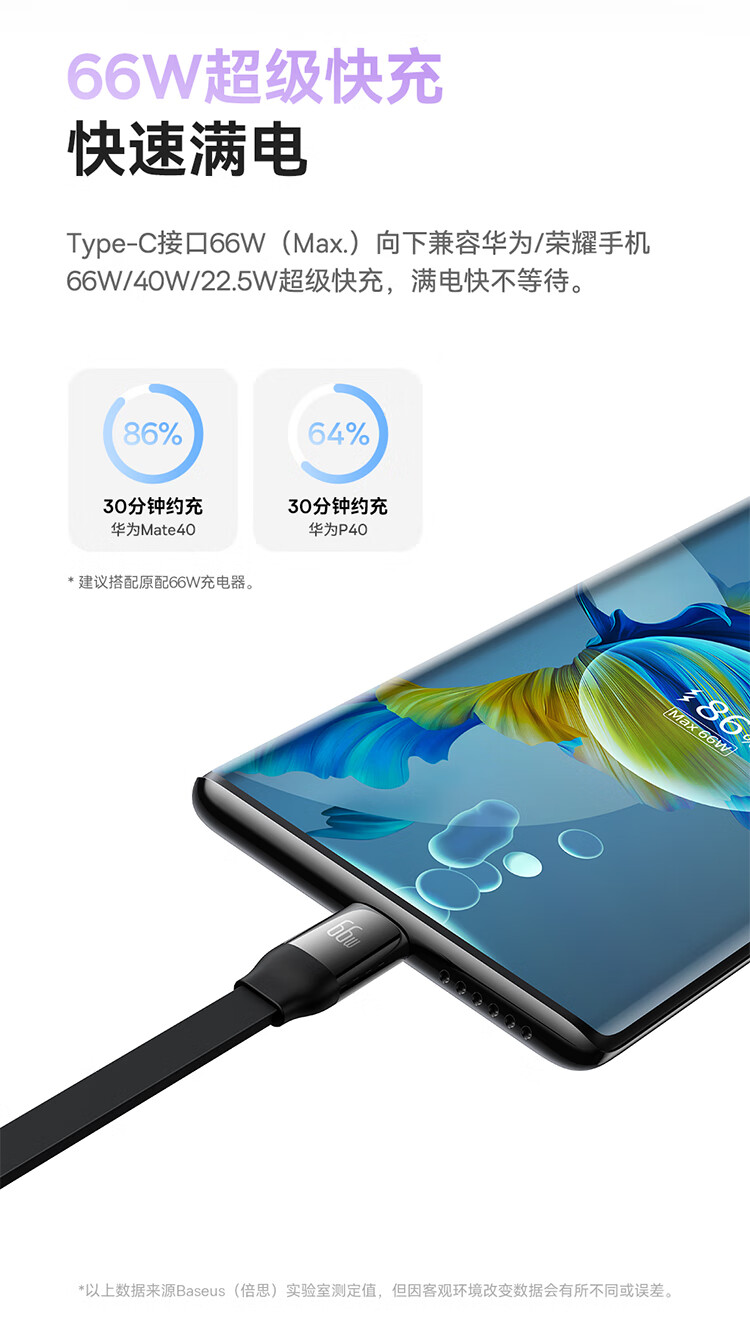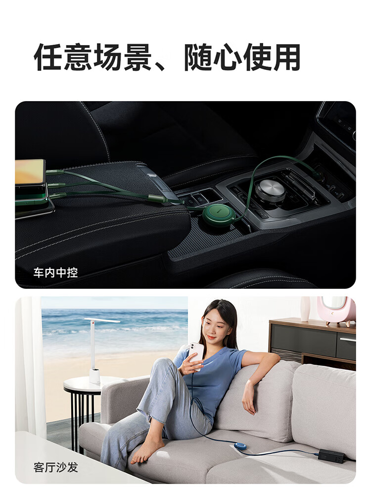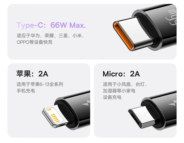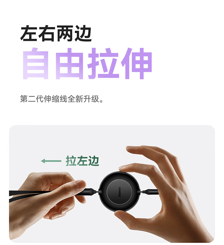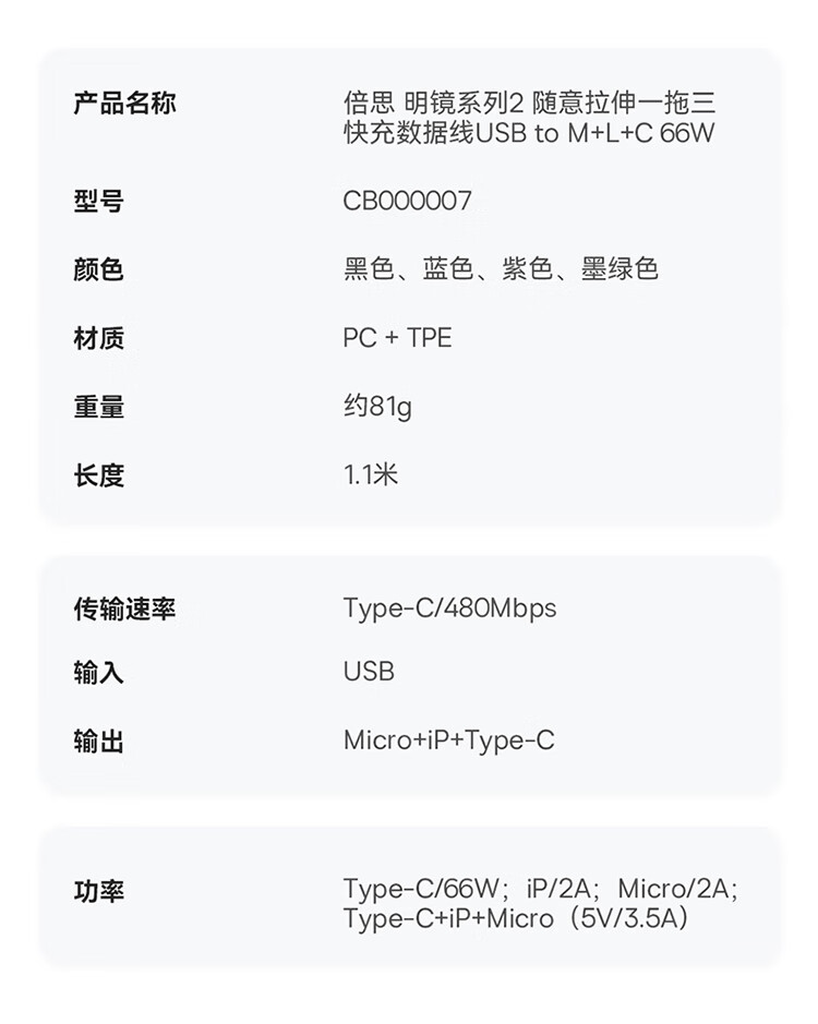 商品名称:倍思 明镜系列2 随意拉伸一拖三快充数据线(66W)黑CAMJ010101/蓝03/紫05/绿06 可选下单备注颜色