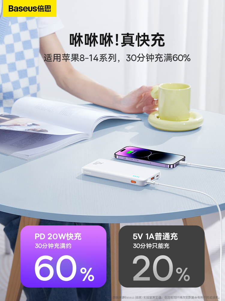 倍思 轻电快充移动电源10000mAh 20W PPQD100001黑色/02白色/03蓝色/05紫色 可选下单备注颜色