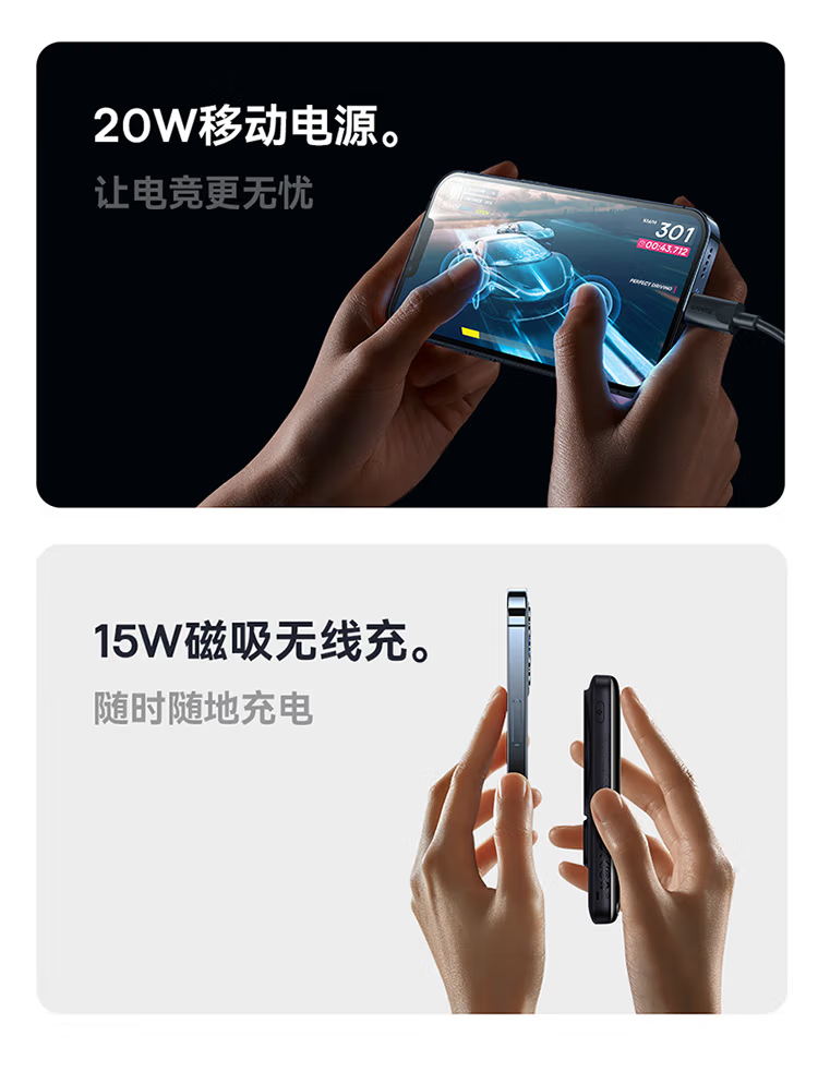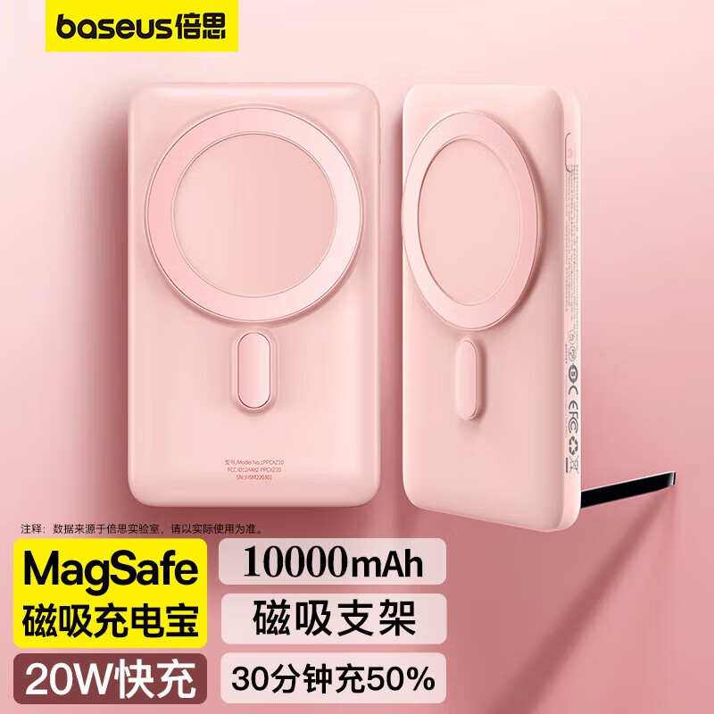倍思 磁吸支架无线快充移动电源10000mAh 20W 白PPCX000002/蓝03/粉04 可选下单备注颜色