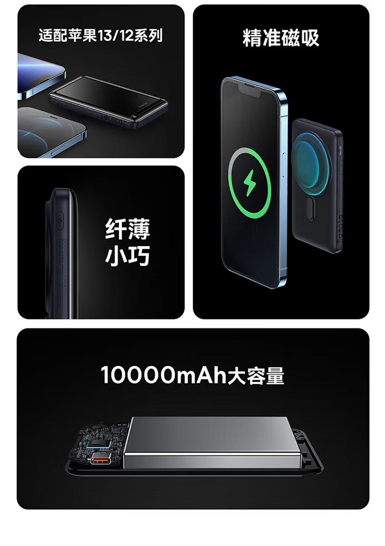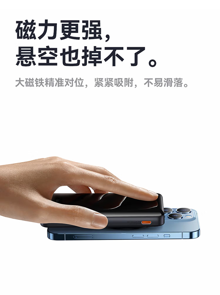 商品名称:倍思 磁吸支架无线快充移动电源10000mAh 20W 白PPCX000002/蓝03/粉04 可选下单备注颜色