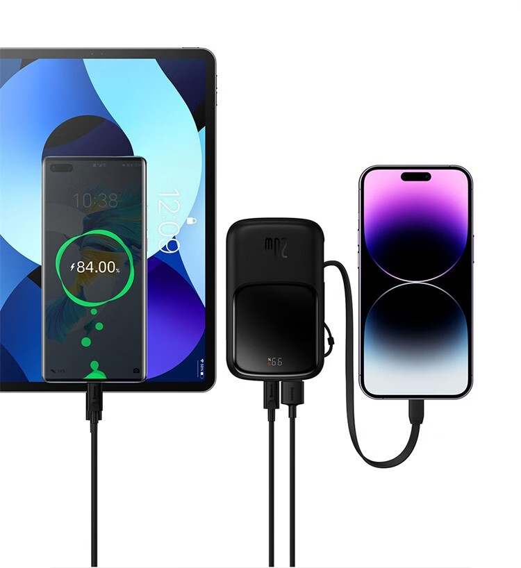 倍思 Q电Pro 数显快充移动电源20W iP版 黑PPQD020001/白02/蓝03/紫05 可选下单备注颜色