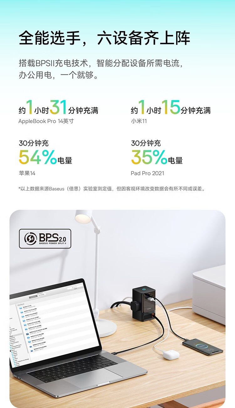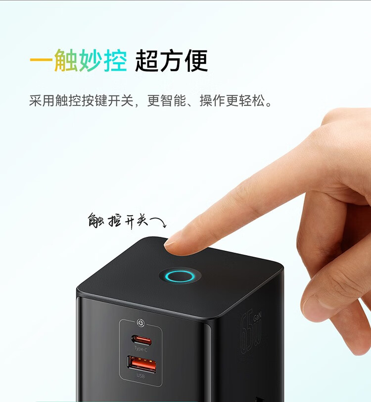 倍思 灵睿系列 数字式插线板 3AC+1U+1C+拉伸线C 65W PSLR000001 黑色6932172616809