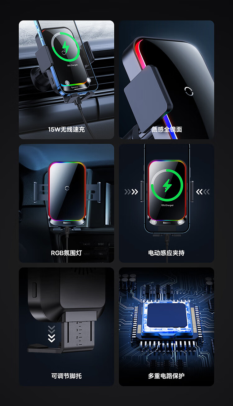 商品名称:倍思 浮光电动支架无线充 15W SUDD000001黑色6932172614263