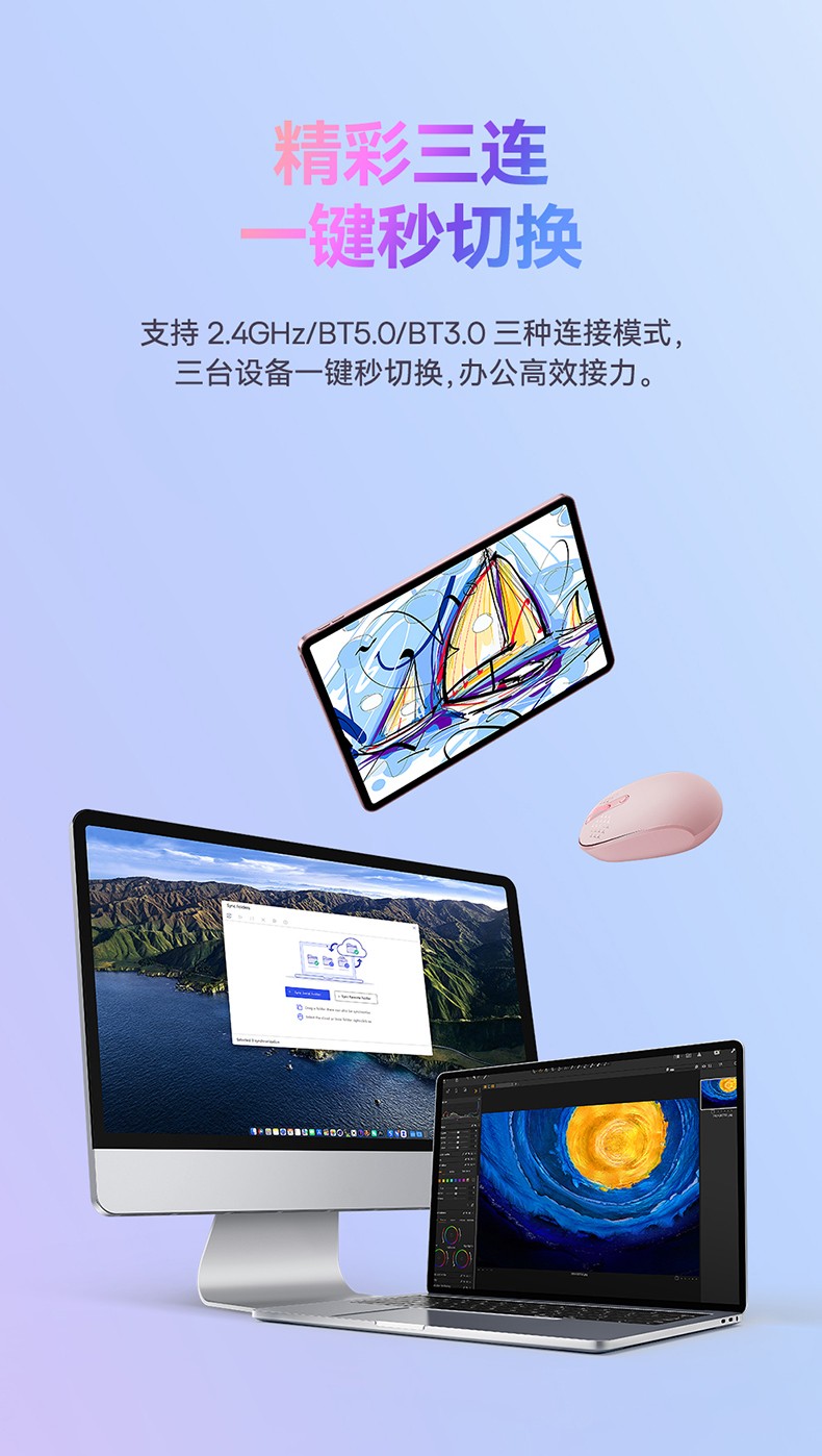 商品名称:倍思 创作者 三模无线鼠标 粉B01055501412-00/紫B01055501512-00/灰B01055501832-01 可选下单备注颜色