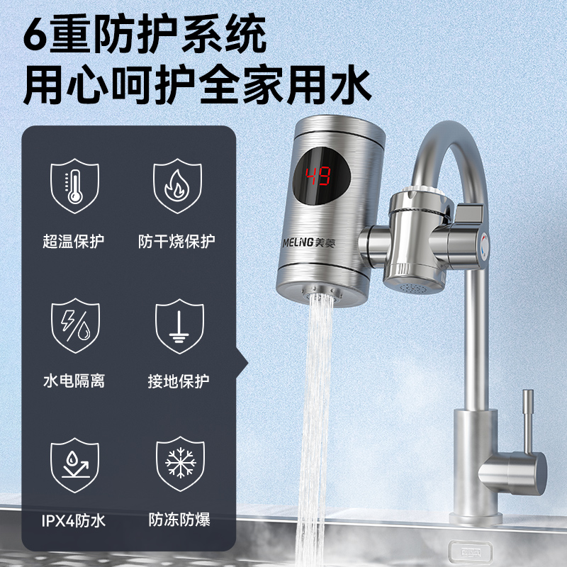 商品名称:美菱电热水龙头MF-D306(不锈钢接驳漏保万向头)-D-KX