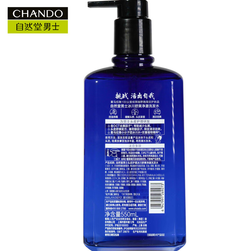 商品名称:自然堂 男士头皮护理冰川舒爽净澈洗发水 550ml 6947991269273