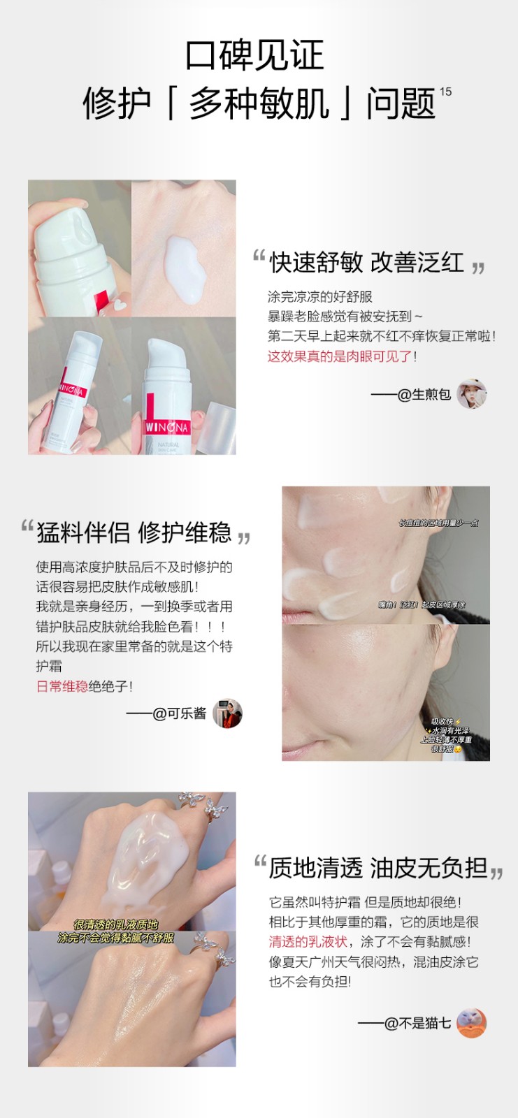商品名称:薇诺娜舒敏保湿特护霜 15g/瓶 6958717860230