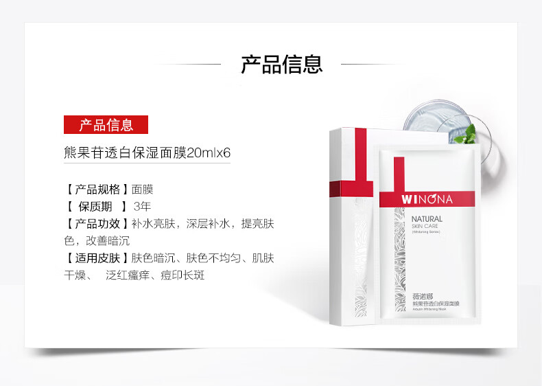 商品名称:薇诺娜熊果苷透白保湿面膜20g*6 6958717860452