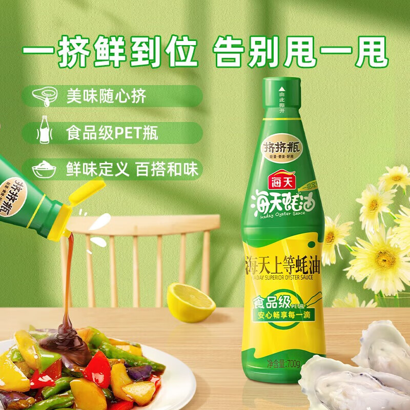 海天 挤挤装蚝油生抽套组(上等蚝油1kgX2瓶+0金标生抽100mlX2瓶)6902265102625