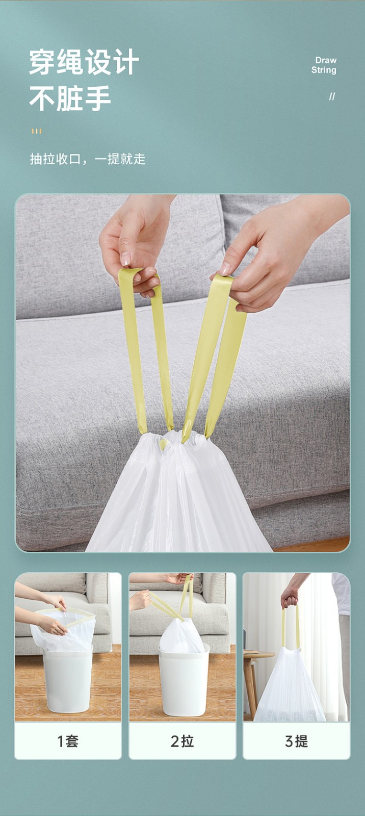 美丽雅 收口穿绳垃圾袋(大号) HC075313 50*55cm共150只