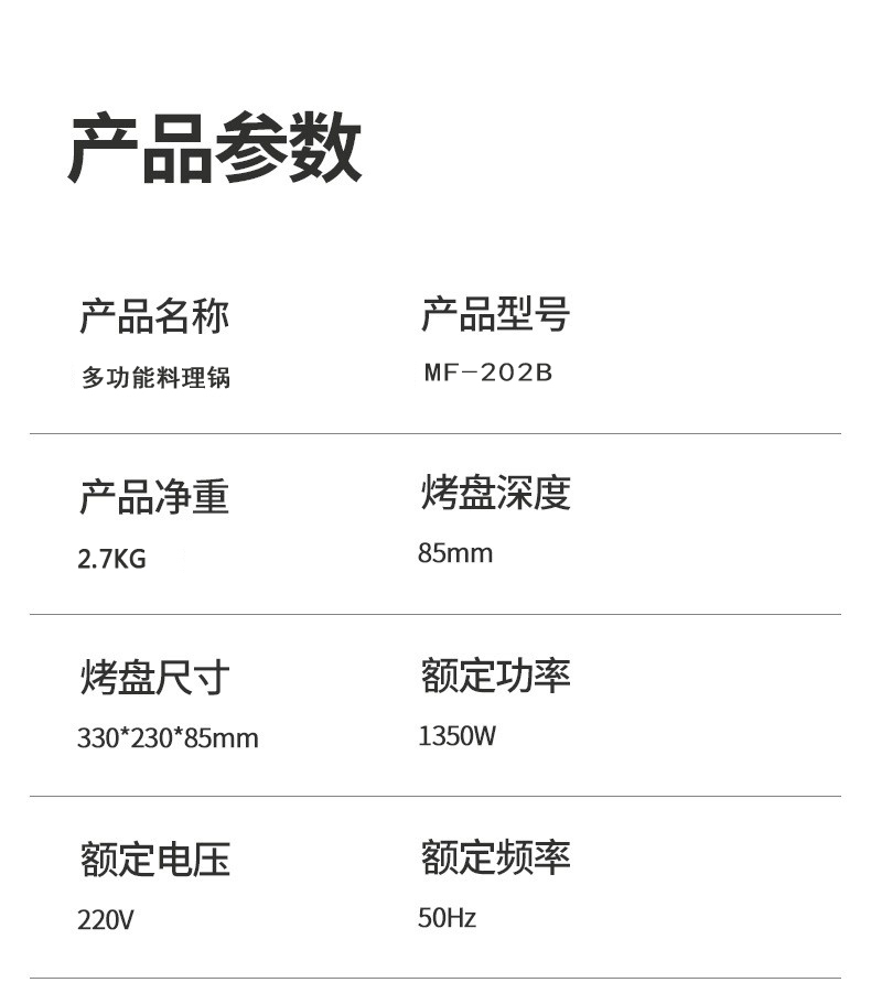商品名称:摩飞 标准版多功能料理锅MF-202B 白 6974602990189